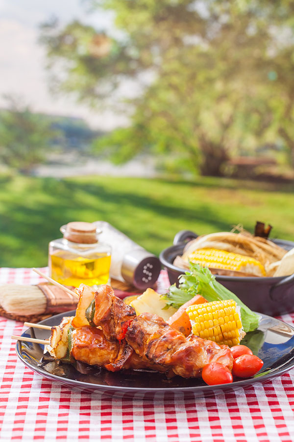 When hosting an outdoor cookout, prep as much as you can in advance. Wash and cut fresh fruits and vegetables, marinate beef and poultry, and cook whole grains a day or two ahead of time.