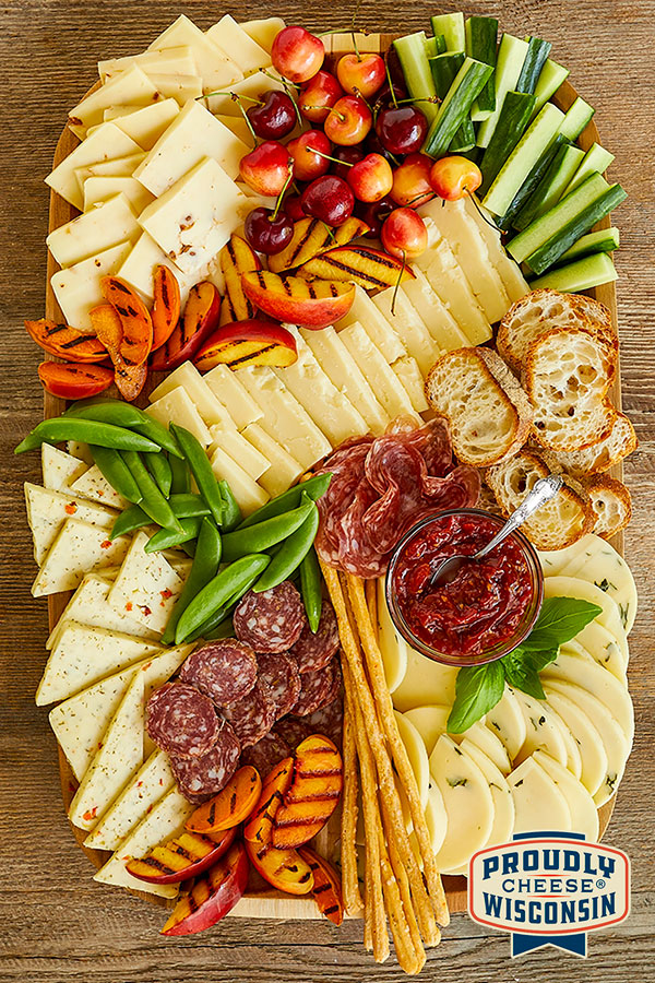 Celebrate summer flavors with a beautiful cheeseboard. Add a variety of fresh fruits, vegetables, and Wisconsin Cheese.