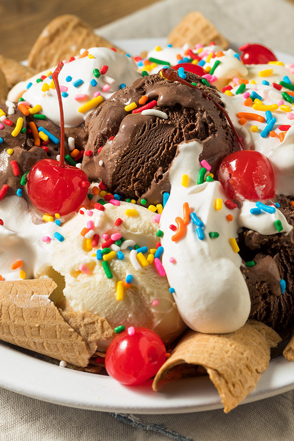 - Provide a variety of ice creams and toppings. We suggest a Homemade Vanilla Ice Cream, a chocolate ice cream, maraschino cherries, whipped cream and sprinkles!