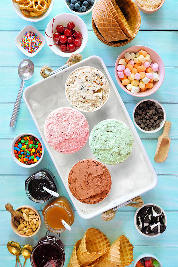 Obviously, the first ingredient for any sundae is ice cream. Make sure you have options for any special diets for participants such as dairy-free, kosher, halal, low-fat, etc. Stick to basic flavors like vanilla, chocolate and strawberry since the sundaes will have plenty of topping options.