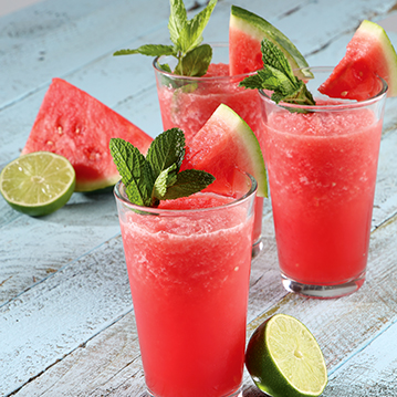 Put all ingredients, except mint, in blender. Blend until smooth.